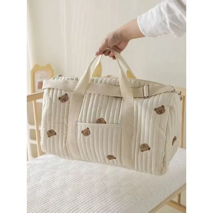 Bolso maternal c/bordadoMaterial: AlgodónMedidas 48 x 24 x 28 cm