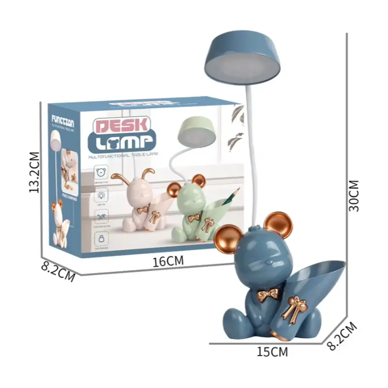 Lampara velador con porta lapiceras y sacapuntas incluido.